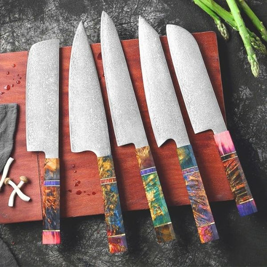 Unique Colorful Culinary Blade Set - Japanese Damascus Steel